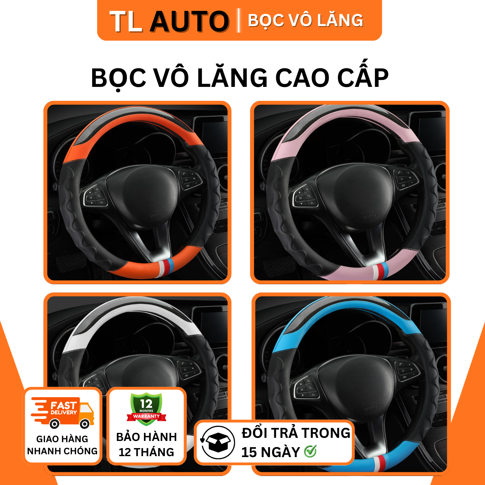 TL Auto cung cấp bọc vô lăng ô tô chất lượng cao, mẫu mã đa dạng, giá hợp lý và tư vấn chính xác theo từng dòng xe.